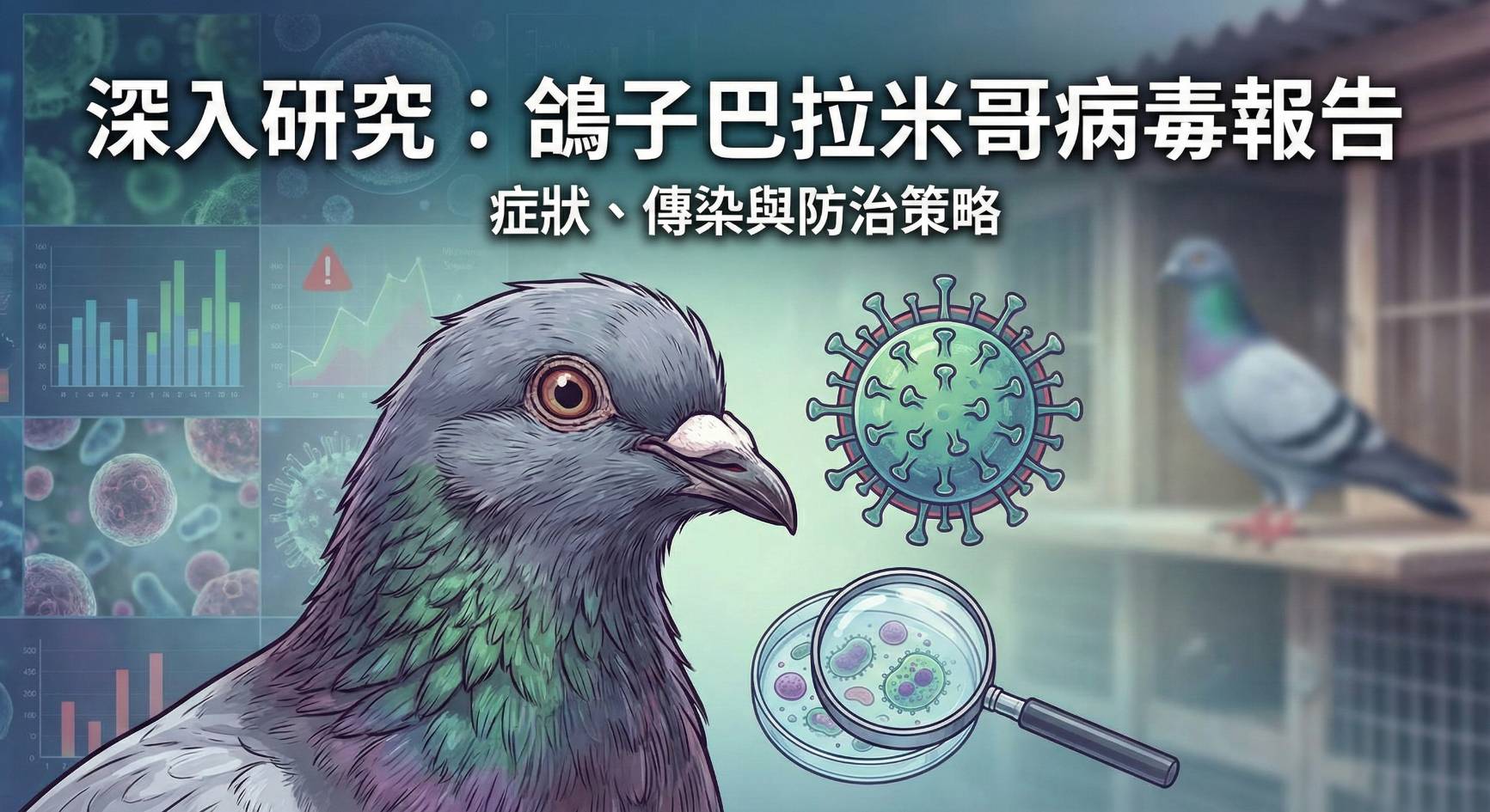 鴿子副黏液病毒第一型(Pigeon Paramyxovirus Type 1, PPMV-1),俗稱「巴拉米哥」或「賽鴿新城病」,是威脅全球鳩鴿科鳥類最嚴重的病毒性傳染病之一。本報告旨在提供一份詳盡的學術與臨床實務指引,涵蓋該病毒的病原學特徵、全球流行病學演變、致病機轉、臨床症狀分期、鑑別診斷標準、支持性療法護理細節、疫苗接種免疫學原理以及生物安全控制策略。透過整合多方文獻與實證研究,本報告特別針對病毒引起的腎臟病變導致的多尿機制、神經系統損傷的不可逆性、以及在缺乏特效藥情況下的精密護理程序進行深入剖析,旨在為獸醫專業人員、賽鴿育種者及動物防疫單位提供具操作性的深度見解。